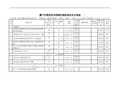 2022年第二季度揮發(fā)性有機(jī)物整治企業(yè)自查表